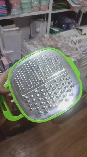 The 3-in-1 Cheese Grater with Storage Container is designed for versatile kitchen use. It comes with three blades and a non-stick coating, making it easy to grate, slice, and peel cheese, fruits, and vegetables. Its practical design helps save time and keeps food preparation neat and efficient.