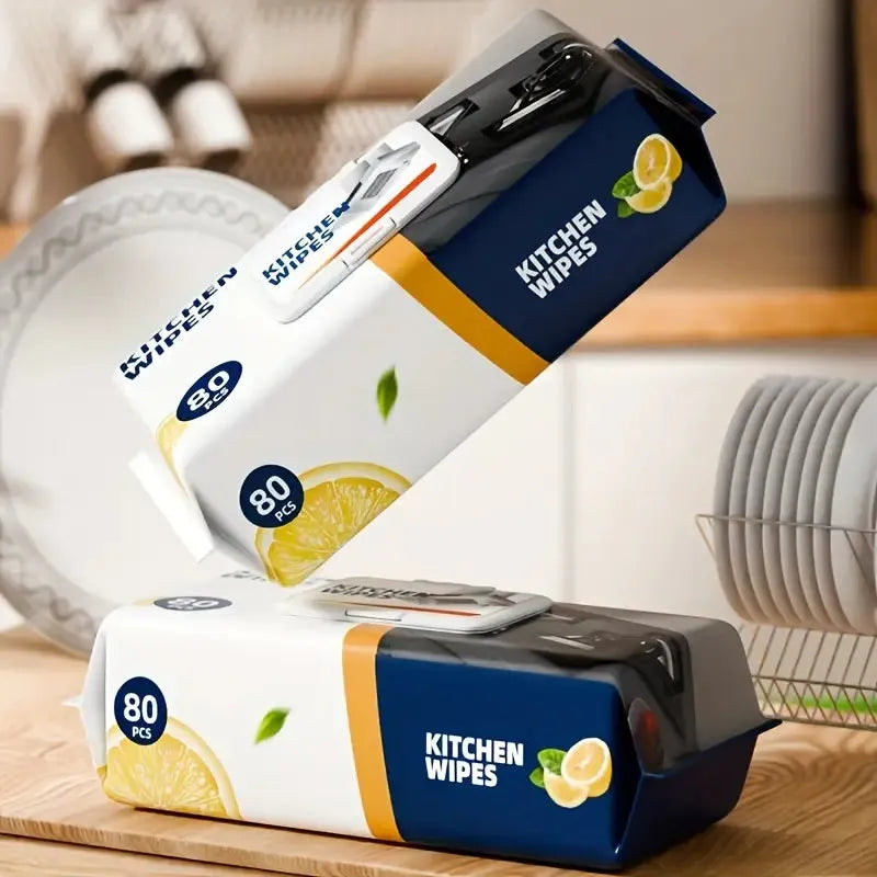 Kitchen Wipes – Pack of 80 Pieces, Multipurpose Cleaning Wipes for Home and Kitchen Use Keep your kitchen clean and fresh with this pack of 80 kitchen wipes, designed for quick and effective cleaning. These wipes are made from soft yet durable material, making them perfect for wiping countertops, stoves, dining tables, and other kitchen surfaces. Easy to use and disposable, they help maintain hygiene and save time during daily cleaning tasks. Key Features: Pack contains 80 high-quality kitchen wipes Soft and durable material for effective cleaning Multipurpose use for countertops, stoves, dining tables, and more Convenient and disposable for hassle-free cleaning Helps maintain hygiene and freshness in the kitchen Easy to carry and store for everyday use
